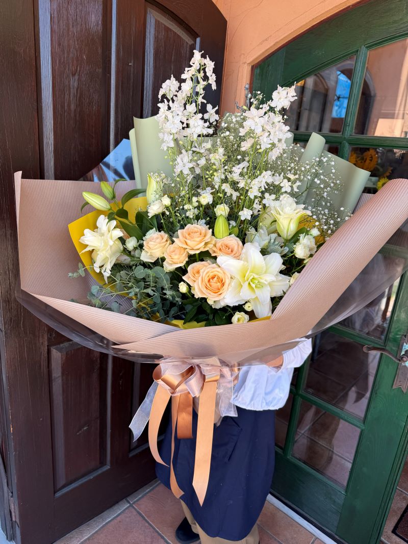 大きい花束の場合は別途に包装・ラッピング代がかかります。(1,000円程度)